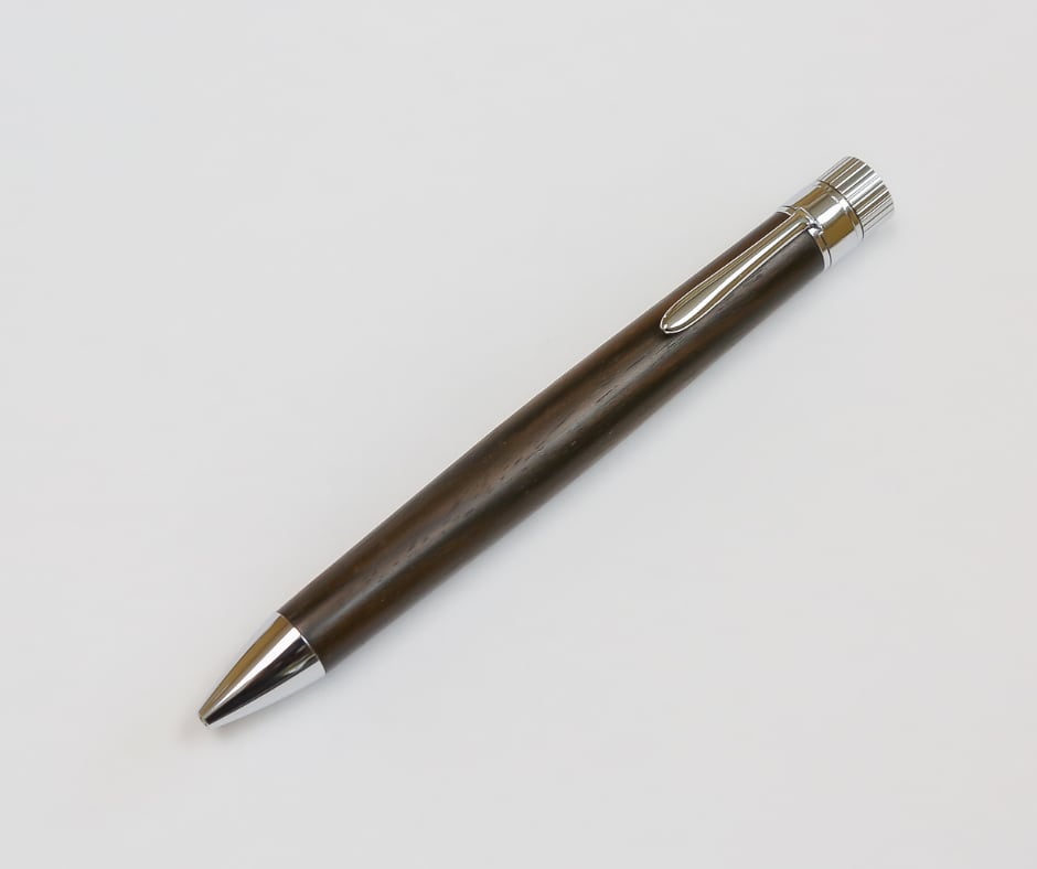 回転式は高級筆記具で使用される方式で、木軸ペンの高級感を出すのには最適です。
